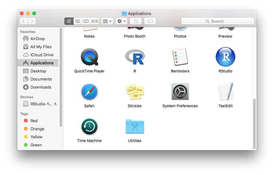 Pro tip for the Mac: To avoid using the mouse to open RStudio, hit command+spacebar to open Spotlight Search and type RStudio into that search bar, then hit enter.