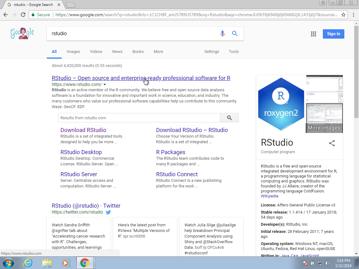 You can start by searching for RStudio on your browser: