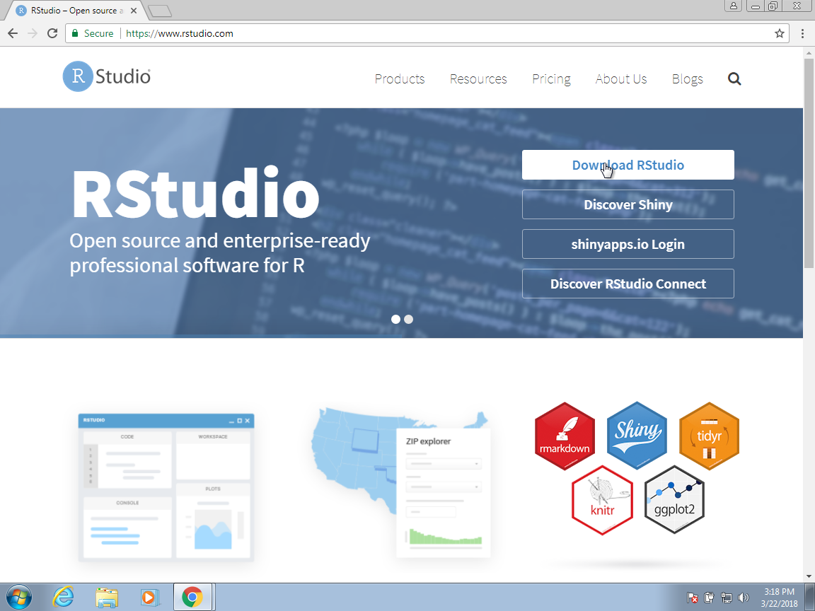 You should find the RStudio website as shown above. Once there, click on Download RStudio.