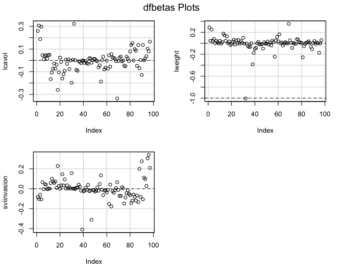 Figuur 68: DFBETAS voor additieve model in prostaatkanker.