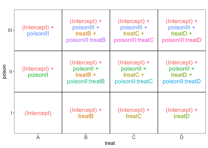 "poisonIII + poisonIII:treatB - poisonII- poisonII:treatB = 0",