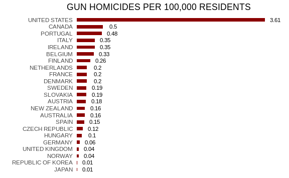 Imagine you live in Europe and are offered a job in a US company with many locations across all states. It is a great job, but news with headlines such as US Gun Homicide Rate Higher Than Other Developed Countries have you worried. Charts like this may concern you even more: