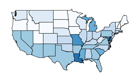 California, for example, has a larger population than Canada, and 20 US states have populations larger than that of Norway. In some respects, the variability across states in the US is akin to the variability across countries in Europe. Furthermore, although not included in the charts above, the murder rates in Lithuania, Ukraine, and Russia are higher than 4 per 100,000. So perhaps the news reports that worried you are too superficial. You have options of where to live and want to determine the safety of each particular state. We will gain some insights by examining data related to gun homicides in the US during 2010 using R.