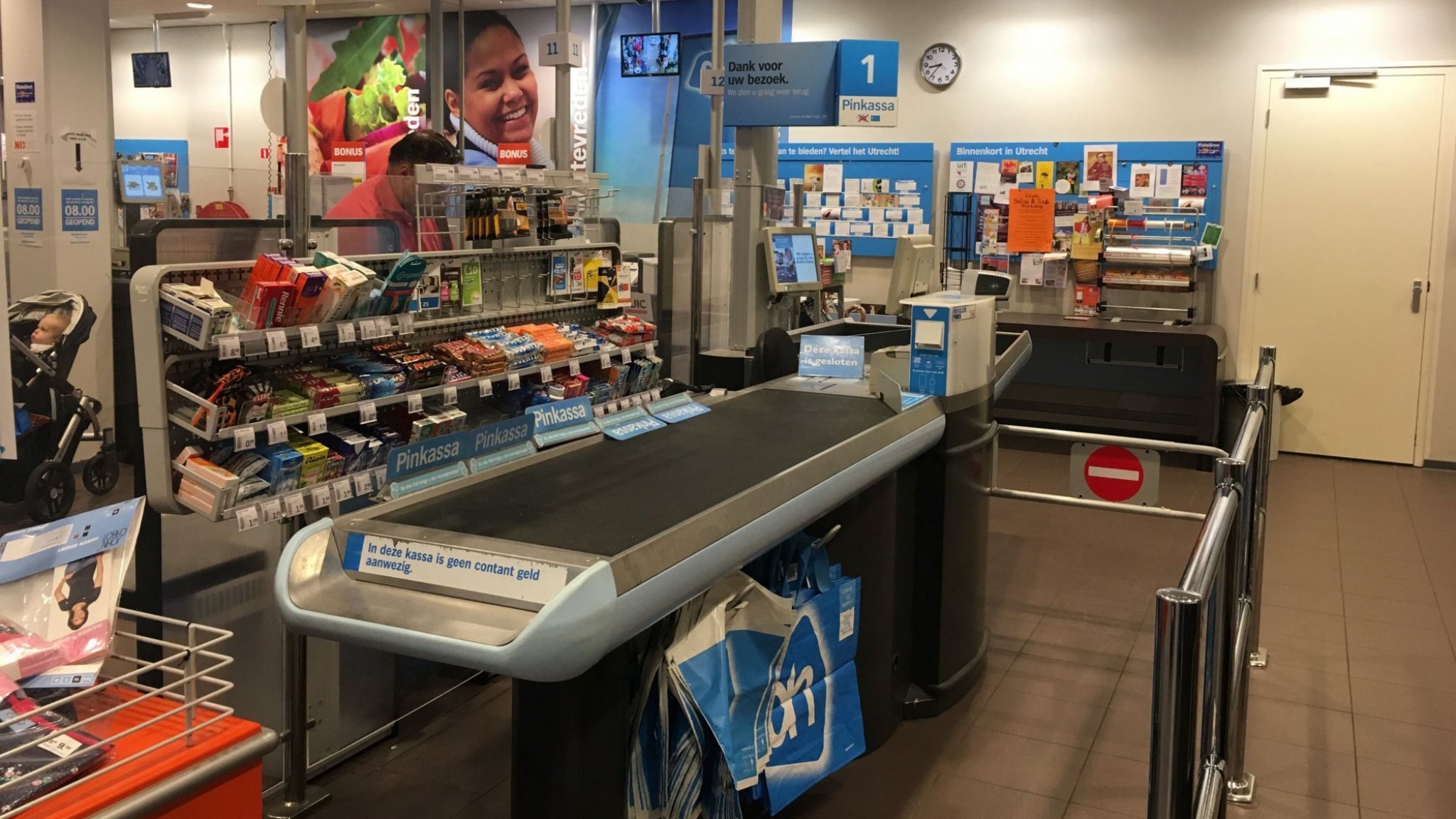 Een regel die het totaalbedrag uitschrijft (tot 2 cijfers na de komma), gevolgd door een regel van het aantal gescande items