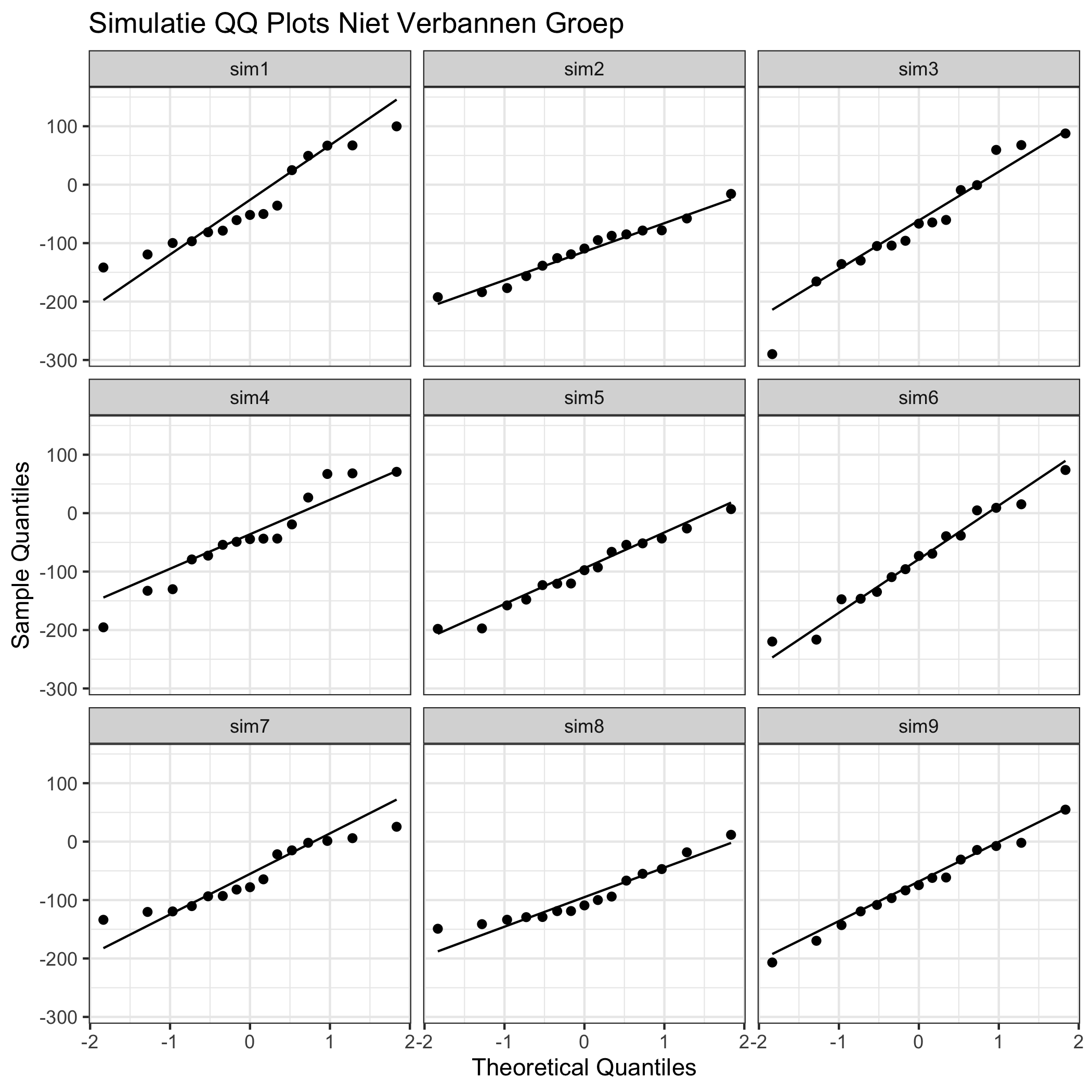 ggtitle("Simulatie QQ Plots Niet Verbannen Groep") +