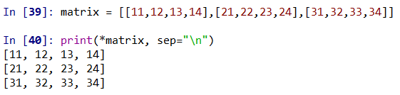 Deze matrix telt 3 rijen en 4 kolommen, en wordt gemodelleerd door een 2D lijst.