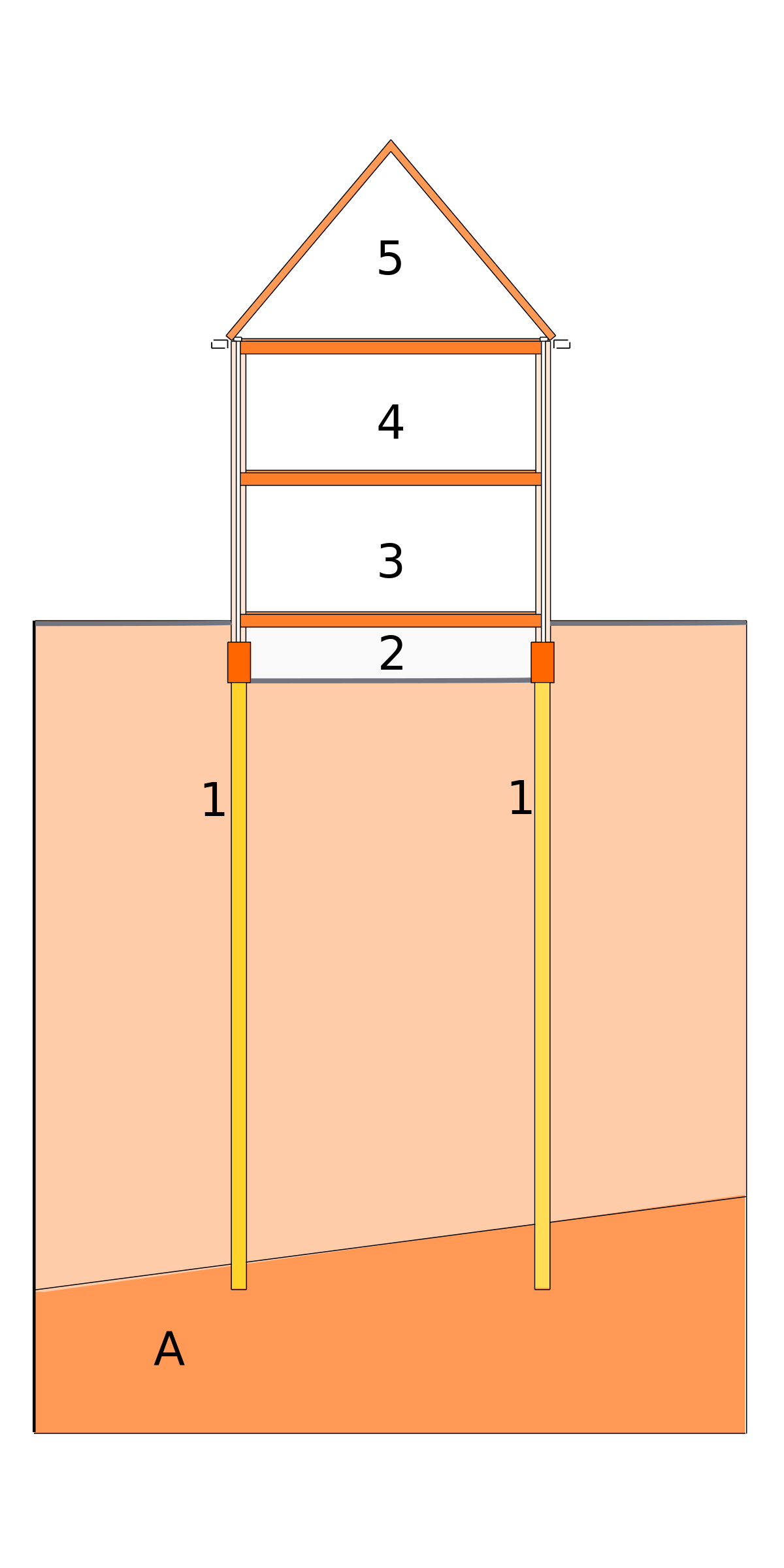 Huizen die gebouwd worden op vochtige of onstabiele grond moeten diepe funderingen hebben. Daarbij worden ronde, betonnen, palen in de grond gegoten tot op een stabiele, sterke laag.