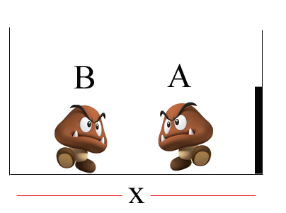 We zetten twee Goomba's in een smalle kamer met 1 deur. Aangezien Goomba's geen namen gebruiken, spreken we hier van Goomba Alex en Goomba Bart.