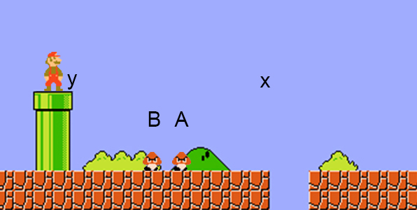 - de afstand van Goomba A vanaf de afgrond gemeten (geheel getal)