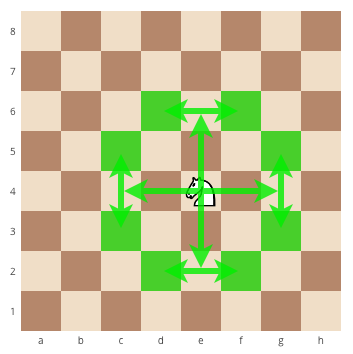 Het paard beweegt zich - in een geldige zet - ofwel twee horizontale velden en één verticaal veld, ofwel twee verticale velden en één horizontaal veld (een L-vorm).